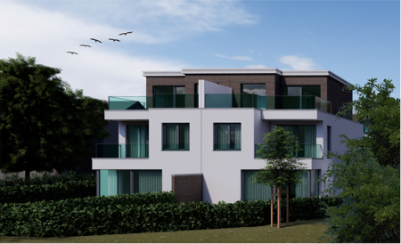 Die Bauweise umfasst jeweils zwei Vollgeschosse und ein Staffelgeschoss, ohne Keller.
